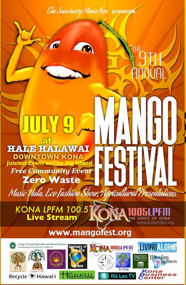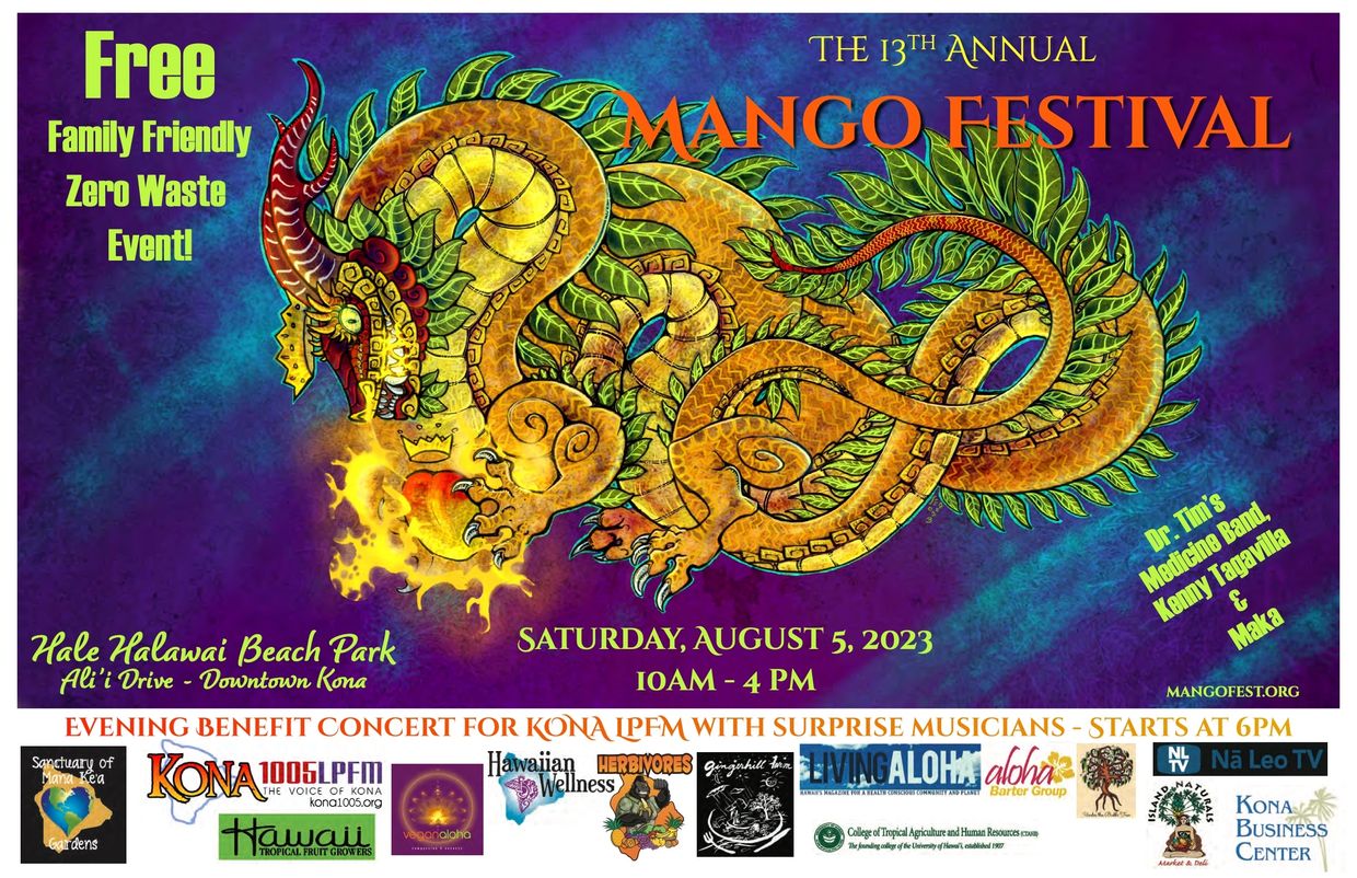 Mango Festival, Saturday, August 5, 2023, Hale Halawai Beach Park, Ali`i Drive, Downtown Kona.