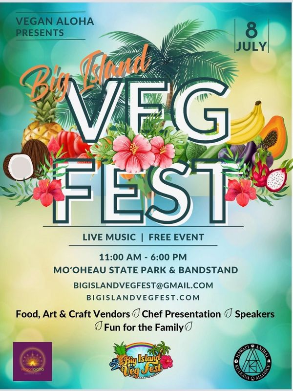Big Island VegFest July 8, 2023, Mo'Oheau State Park & Bandstand